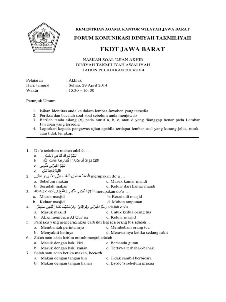 Soal Soal Fkdt : Soal Ujian Tpq : Mudah2an kualitas soal di cetak.