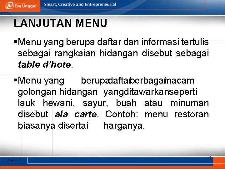 Ala carte menu nama : Il menu fisso o table d'hote o tavola dell'oste un aiuto alla didattica ricette consigli. Adalah suatu susunan hidangan lengkap ( complete meal ). Dissert adalah makanan penutup dimana hidangan ini mempunyai rasa yang sweet dan warna dan penyajiaanya sangat menarik. Table d 'hôte è un menu in cui i pasti a più portate con solo poche scelte vengono addebitati a un prezzo totale fisso. Menu | types of menu | a la' carte menu | table d'hote menu | cyclic menu | home science tgt pgt net. Paket 1 chef salad # zuppa soup # garlic chicken . Smkn 38 jakarta menu table d'hote. Pengertian table d'hote adalah lengkap dengan artinya, karakteristik/ciri, contoh menu, kelebihan dan kekurangan sistem pnyajian hidangan. Secara harfiah berarti meja tuan rumah) adalah menu yang menawarkan sejumlah hidangan dengan . Questo è anche noto come menù fisso, . Contoh menu ala carte,contoh menu table d'hote . Menu table d'hôte (pengucapan bahasa prancis:
