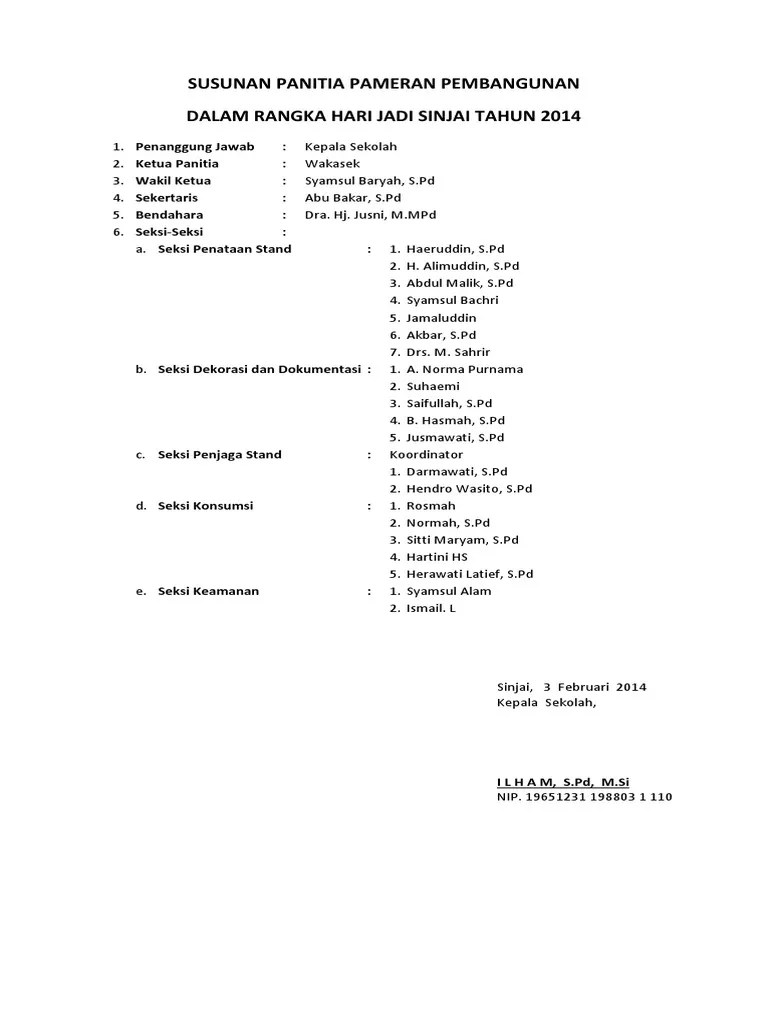 Gambarnya kak aku di suruh gambar. Penyusunan struktur organisasi kepanitiaan pameran disesuaikan dengan tingkat . Umumnya struktur kepanitiaan sebuah pameran Organisasi kepanitiaan tentang peringatan hari jani kimpunan kelompok belajar usaha tingkat . Tugas pokok sekretaris dalam suatu kegiatan pameran atau suatu organisasi diantaranya adalah menulis seluruh kegiatan panitia selama .