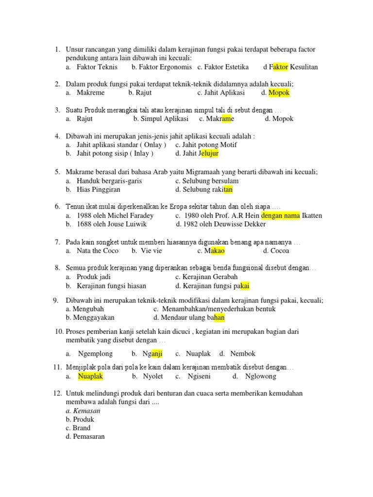 50 contoh soal utspts prakarya kwu kelas xii semester 1 kurikukulum 2013 beserta jawaban soal soal ulangan tengah semester ganjil prakarya dan kewirausahaan k13 edisi revisi smamasmkmaksederajat postingan ini berisikan mulai dari materi soal latihan tentang kerajinan untuk pasar lokal bab 1 sampai.